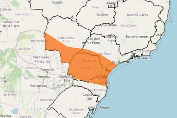 O alerta vale para os estados do Paraná, Mato Grosso do Sul, Santa Catarina e São Paulo.