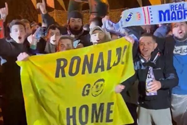 Apesar do frio de 7º C noturna espanhola, aos gritos de “Ronaldo, saia agora”, a torcida compareceu em peso utilizando coletes e bandeiras amarelas que pediam a saída do brasileiro da gestão do time.