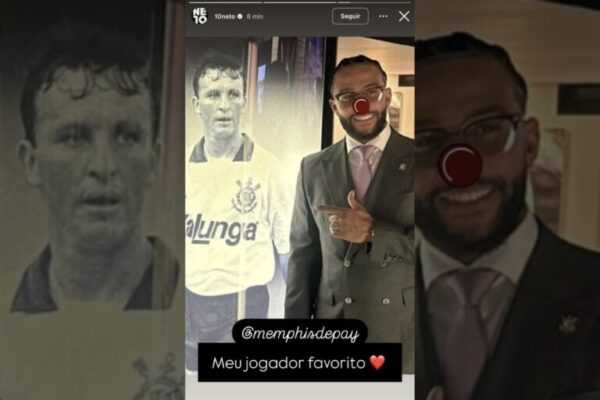 O apresentador Neto e o atacante Memphis Depay, do Corinthians, voltaram a trocar farpas em redes sociais depois de a inauguração de uma música produzida através do holandês. Na noite desta segunda-feira (23/6), Depay publicou uma foto com Neto com um nariz de palhaço e o ex-Corinthians não deixou para trás e publicou uma foto do holandês com o mesmo adereço.